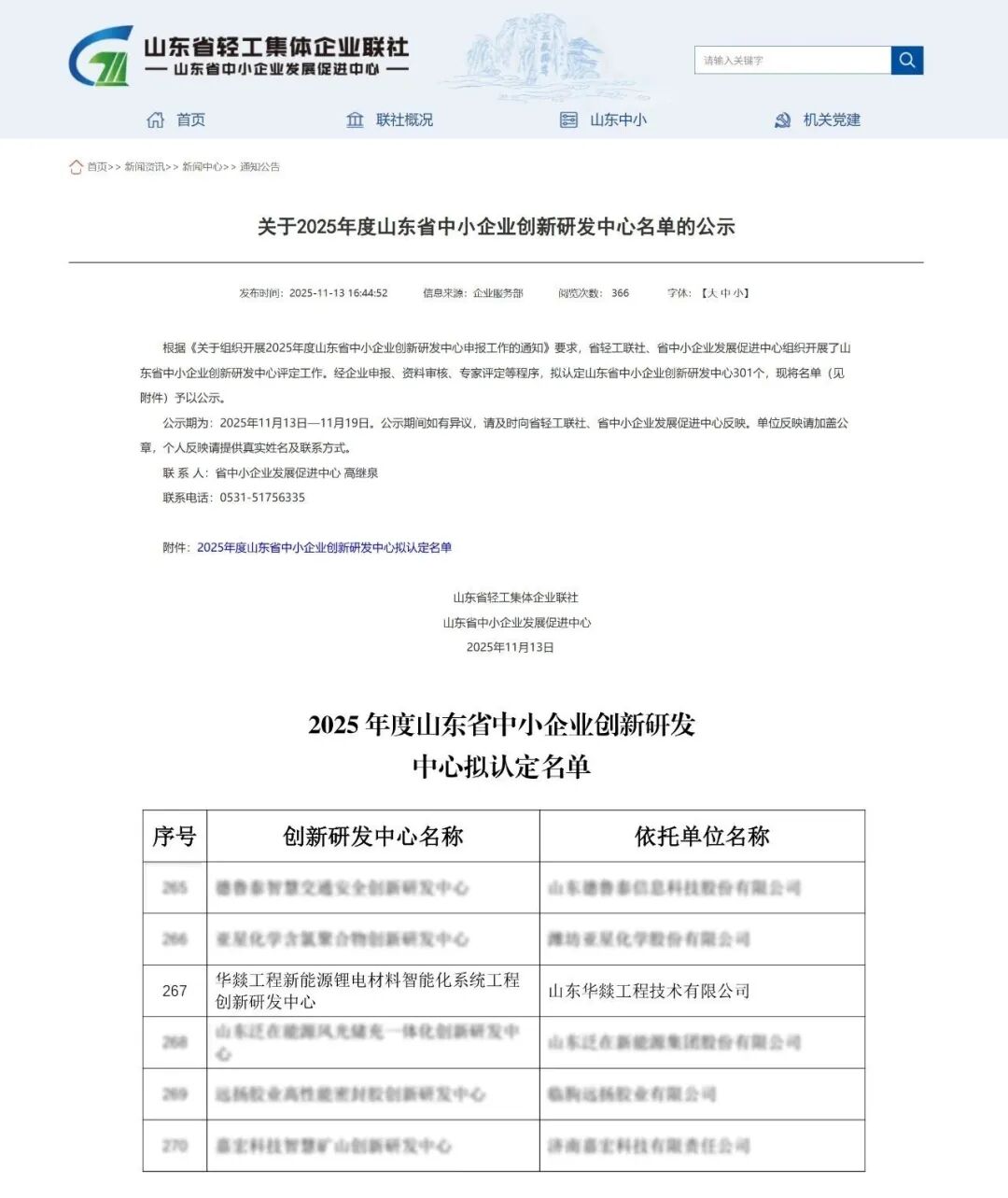 Recently, the Shandong Light Industry Collective Enterprise Association and the Shandong Small and Medium Enterprises Development Promotion Center jointly released the "Announcement of the 2025 List of Innovation and R&D Centers for Small and Medium Enterprises in Shandong Province," and Shandong Huayi Engineering Technology Co., Ltd.'s "Intelligent System Engineering Innovation and R&D Center for New Energy Lithium Battery Materials" was successfully selected. This recognition is an authoritative affirmation of Huayi Engineering's R&D strength and innovation capability in the field of lithium battery materials, and also marks a new step forward for the company in technical challenges and the transformation of achievements.