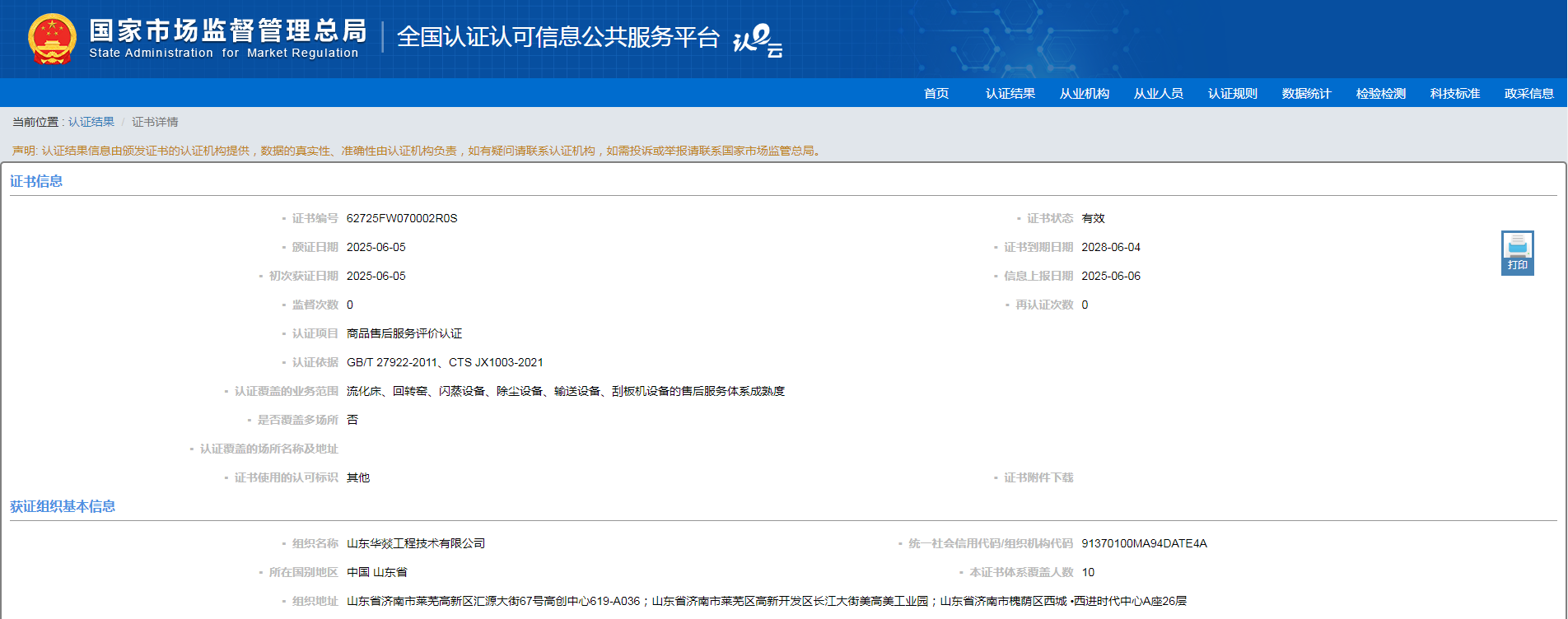 Scope of this certificate: The maturity of the after-sales service systems for fluidized beds, rotary kilns, flash equipment, dust removal equipment, conveying equipment, and scraper machines. Huayi Engineering's receipt of this certification is not only an authoritative recognition of its service capabilities but also marks its transformation from 'industrial manufacturing' to 'industrial services,' setting a new benchmark for high-quality service in drying and roasting equipment.
